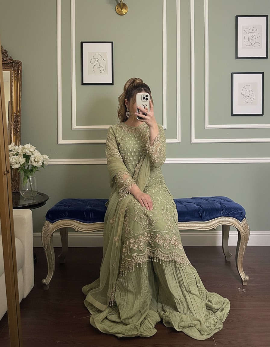 Perfect for weddings, receptions, festive occasions, and party wear, this designer sharara set blends elegance, premium quality, and comfort.