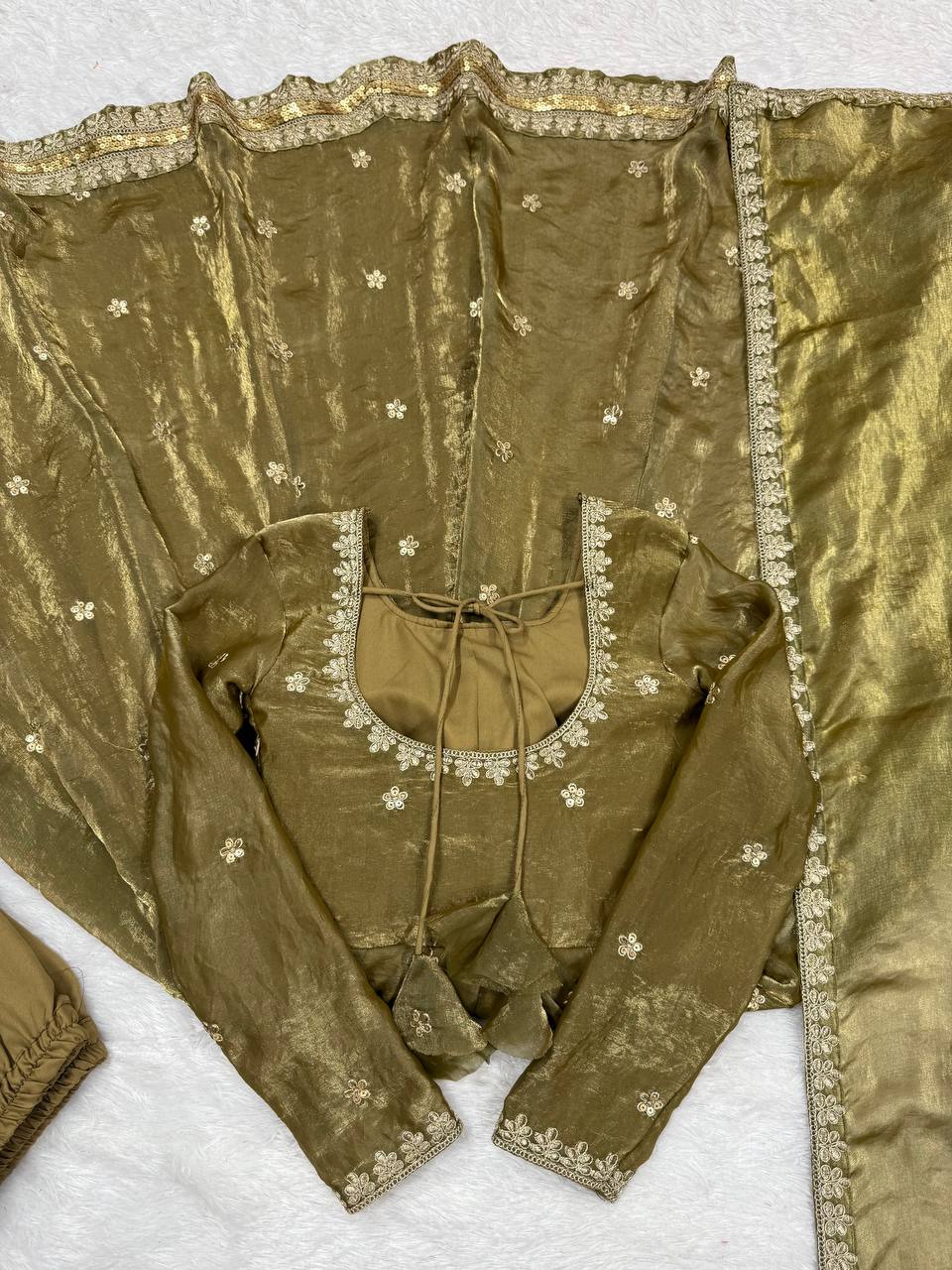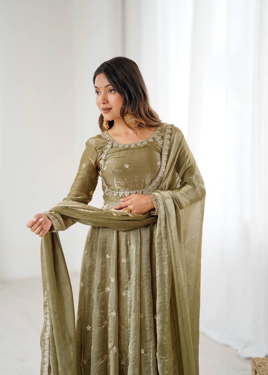 Step into effortless elegance with our New Coding with Sequence Work Gown Pant & Dupatta Set, crafted for women who love timeless ethnic fashion with a modern twist. Designed using premium Fandy Silk fabric, this beautifully embroidered gown features intricate coding and sequence work on both front and back, ensuring a luxurious look from every angle. Paired with a comfortable micro-fabric pant and a delicately worked dupatta, this ensemble is perfect for festive celebrations, weddings, parties, and special occasions.